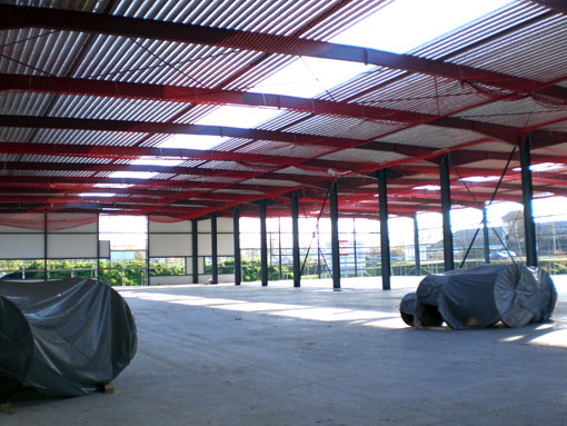 Verwaltungsgebäude. Die Halle misst 77 mal 54 Meter