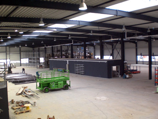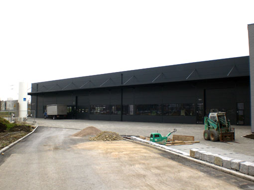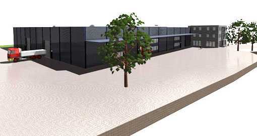 Produktionshalle mit Verwaltungsgebäude. Sie soll Anfang